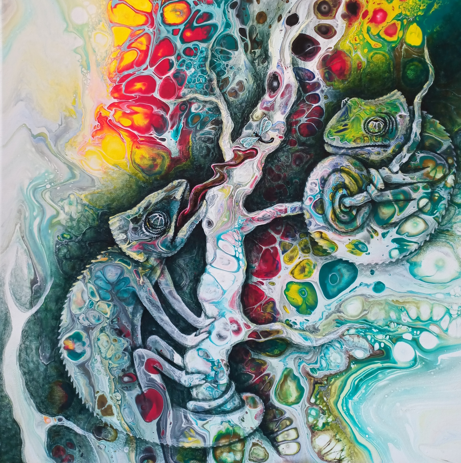 So wie alles im Leben, ist auch die Beziehung zum Malen und jedes einzelne Bild ein Prozess. Nachdem ich viele Jahre lang nicht gemalt hatte, landete eines Sommertages vor wenigen Jahren wieder ein Pinsel in meiner Hand, als sollte es so sein. Seither ist die Malerei, genau wie Familie und Beruf, ein wesentlicher Teil meines Lebens.